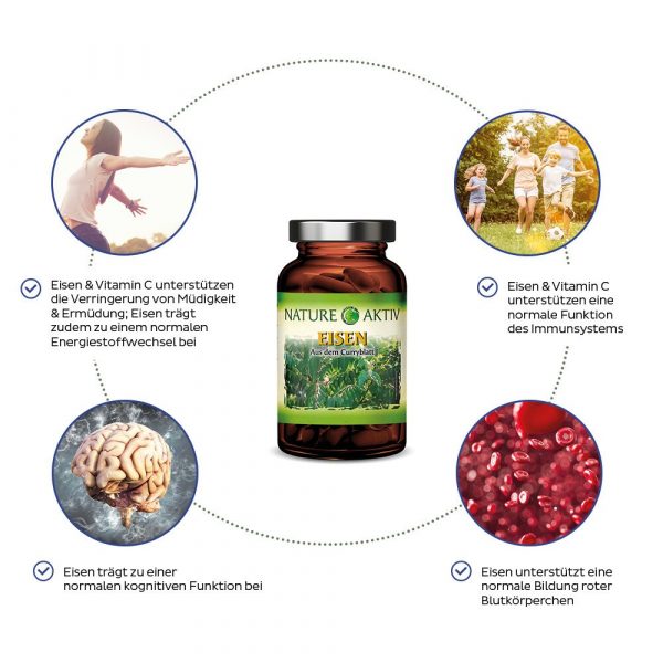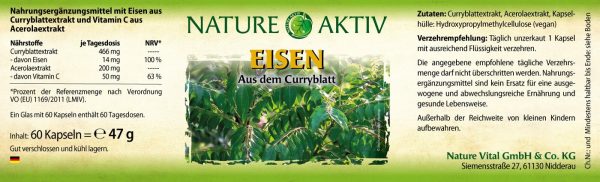 Eisen Kapseln mit natürlichem Eisen aus dem Curryblatt und Vitamin C aus Acerola Extrakt.