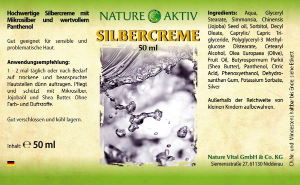 - Ein Dispenser Nature Aktiv Silbercreme enthält 50 ml unparfümierte Silbercreme.