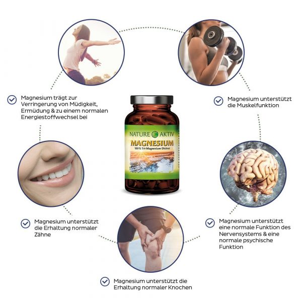 Magnesium unterstützt Energiestoffwechsel, Knochen, Muskelfunktion, Nervensystem, Psyche und verringert Müdigkeit.
