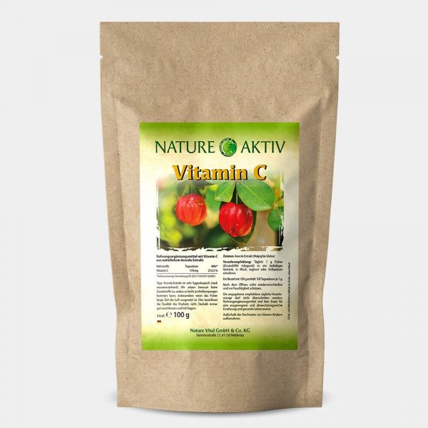Vitamin C Pulver – natürliches Acerola Kirschextrakt. Unterstützt Immun- und Nervensystem sowie Kollagenbildung der Haut, Zähne und Knochen.
