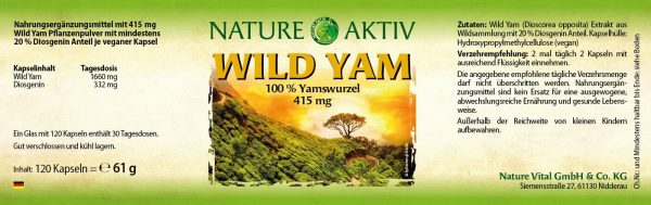 Wild Yam Kapseln. 100 % reiner natürlicher Yams aus Wildsammlung. Hochdosiert. Hergestellt in Deutschland.